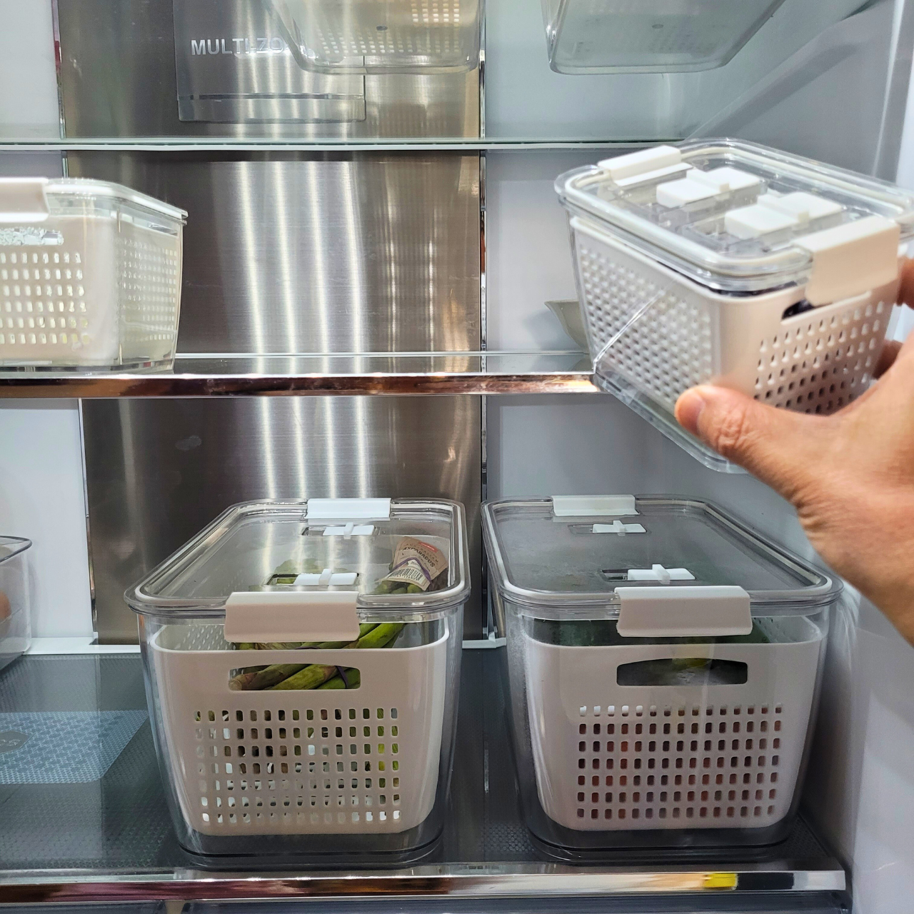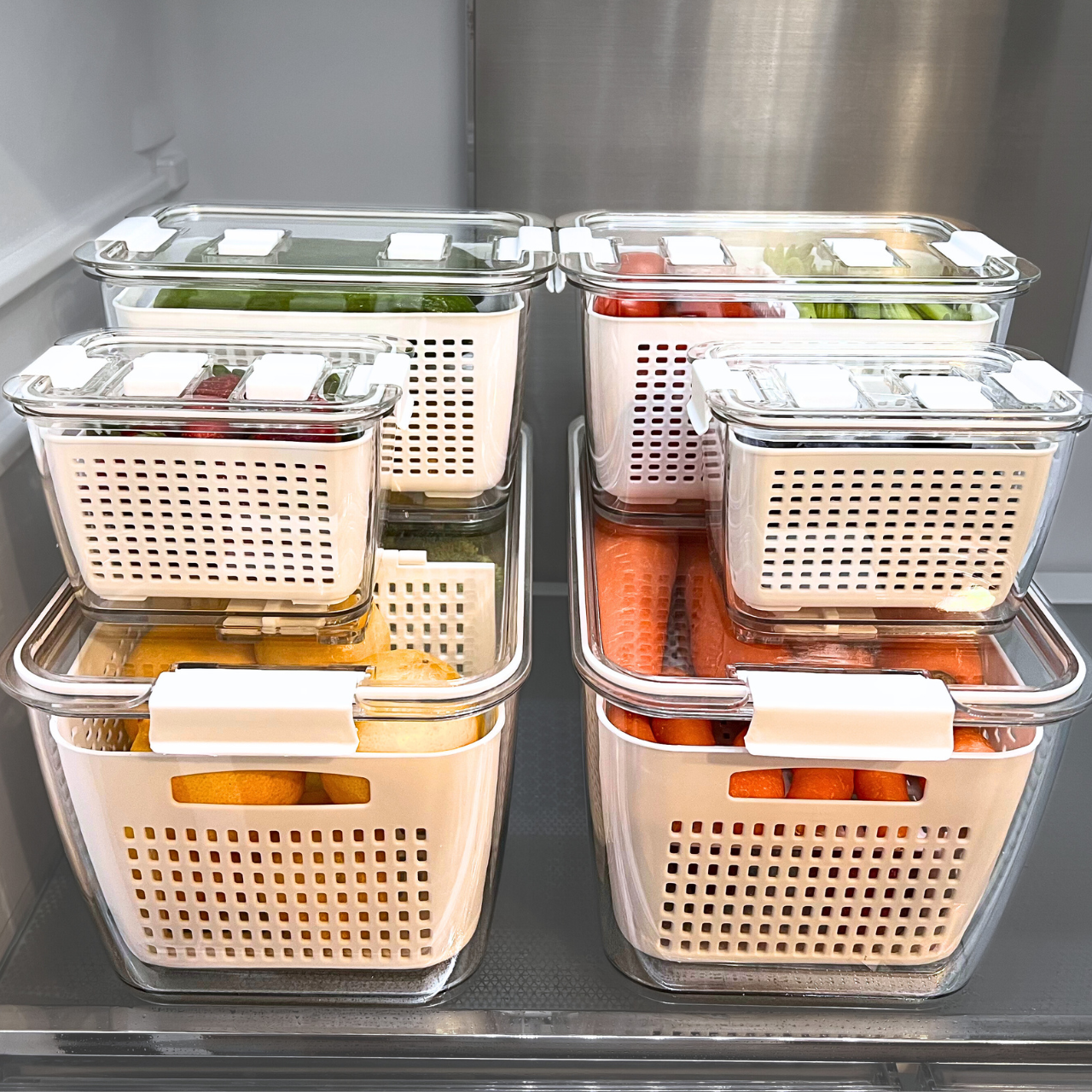 Organise the fridge into zones for easy access and meal prep - leftovers, ready to eat, dairy products & eggs, raw meat & fish, fresh fruits & veggies, sauces, condiments & drinks.